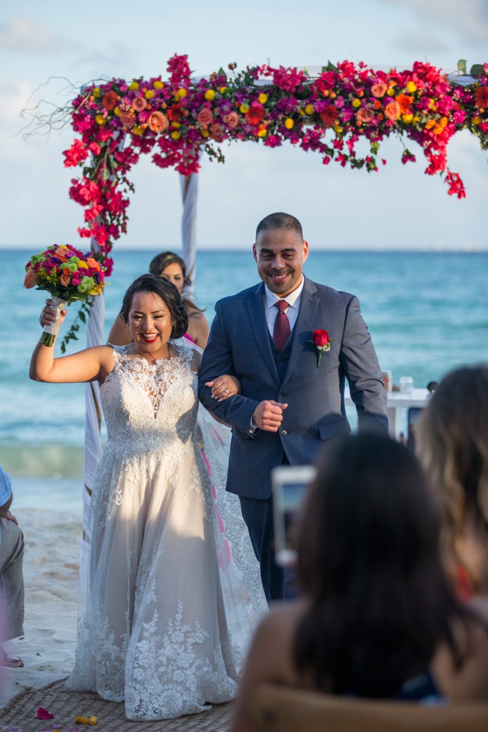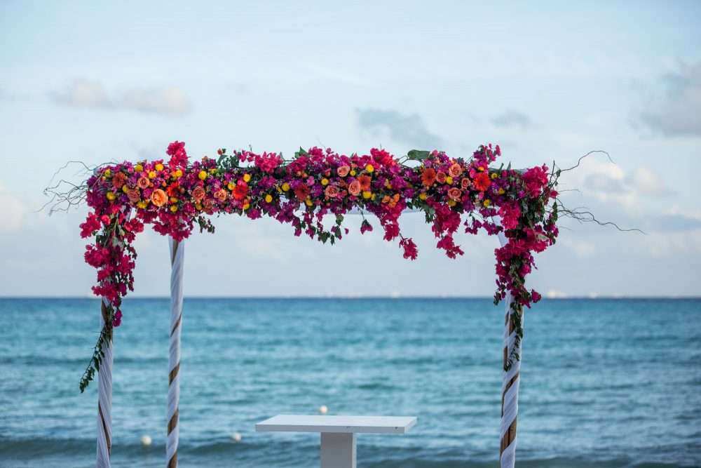Dalle spiagge della California a quelle dei Caraibi messicani di Playa del Carmen per questo fantastico, colorato ed elegante matrimonio sulla spiaggia curato da Weddings Riviera Maya.